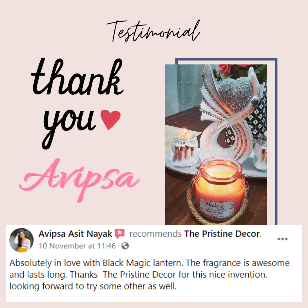 Absolutely in love with Black Magic lantern. The fragrance is awesome and lasts long. Thanks The Pristine Decor for this nice invention. looking forward to try some other as well.